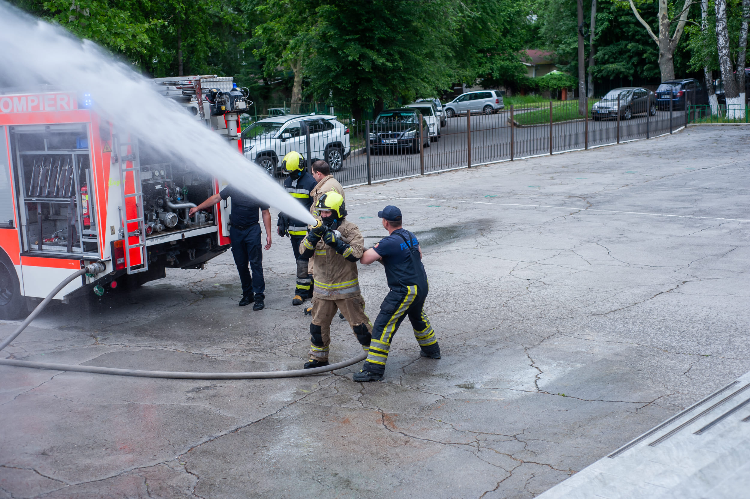 Одним из ярких моментов дня стала встреча с представителями пожарной части. Сотрудники продемонстрировали работу пожарной машины, показали разные типы водяного напора. Ребята с большим интересом наблюдали за мастер-классом.